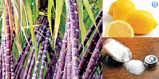 30 மில்லி அளவு கரும்புச்சாறுடன் அரைமூடி எலுமிச்சை சாறு சேர்க்கவும். இதனுடன் சிறிது உப்பு சேர்த்து நீர்விட்டு கலந்து குடித்துவர நீர்ச்சத்து குறைபாடு நீங்கும். உடலுக்கு பலம் தரும். சுறுசுறுப்பை கொடுக்கும். கோடைகாலத்தில் இதை சாப்பிட செரிமானம் ஏற்படும். உடலுக்கு குளிர்ச்சி உண்டாகும். மூளை செயல்பாட்டை அதிகரிக்கும்.