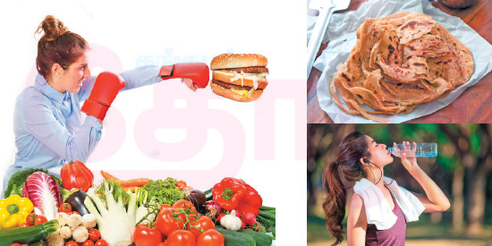 தினசரி இரண்டு முதல் மூன்று லிட்டர் தண்ணீர் அவசியம். இது ஒரு முக்கியமான விதி. இந்தியா போன்ற மித வெப்ப மண்டல நாடுகளில் தினசரி குறிப்பிட்ட அளவு தண்ணீர் குடிக்காவிடில் உடல் விரைவில் டீஹைட்ரேட் ஆகிவிடும். எனவே, எந்தக் காரணத்தை முன்னிட்டும் தண்ணீர் குடிப்பதைத் தவிர்க்காதீகள். நம் உடலின் சூப்பர் டீடாக்ஸ் ஏஜென்ட் தண்ணீர்தான். உடலில் உள்ள தேவையற்ற நஞ்சுக்களை நீக்கி உள் உறுப்புகளை சுத்தமாக்குகிறது.