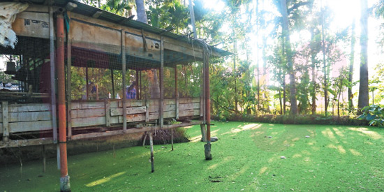 கழிவுகளை உண்ட மீன்கள் விடும் கழிவும் சேர்ந்து, அதன் அருகே உள்ள சிறிய நீர் தேக்கத்திற்குள் வந்தடையுமாறு அதன் பக்கத்தில் சிறிய நீர் தேக்கம் செய்து வைத்திருக்கிறோம். அந்த நீர் தேக்கத்திற்குள் முயல், ஆடு, மாடு இவைகளின் கொட்டில் கழிவுகள் தேக்கத்திற்குள் வந்து சேருமாறு குழாய் இணைப்பு கொடுக்கப்பட்டுள்ளது. அதற்குள் இலை, தழைகள், ஆவாரை, ஊனங்கொடி போன்ற தலைச் சத்து, மண் சத்துள்ள தேவையற்ற மட்டைகளை கிடப்பில் போட்டு ஊற வைத்து மக்க வைக்கிறோம். இந்த நீர் செடிகளுக்குத் தேவைப்படும் உர நீராக மாறுகிறது. இந்த நீர் வடிகட்டப்பட்டு அருகே உள்ள தொட்டிக்குள் உர நீராகப் போய்ச் சேருமாறு இணைப்பு உள்ளது. செடிகளுக்கு சொட்டு நீர் பாசனத்தில் நீர் பாய்ச்சும்போது அத் துடன் இந்த உர நீரும் இணைக்கப்படுகிறது. இதற்கு ஆட்கள் அதிகம் தேவை இல்லை.