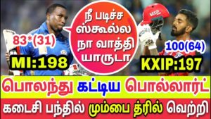 • மும்பை மரண வெற்றி கடைசி பந்தில் பதறி போன பஞ்சாப்!! (வீடியோ)