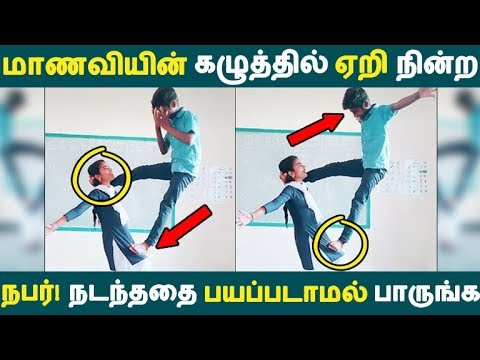 மாணவியின் கழுத்தில் ஏறி நின்ற நபர்! நடந்ததை பயப்படாமல் பாருங்க!! (வீடியோ)