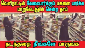 • வெளிநாட்டில் வேலைபார்க்கும் மகனை பார்க்க மாறுவேடத்தில் சென்ற தாய் !! (வீடியோ)