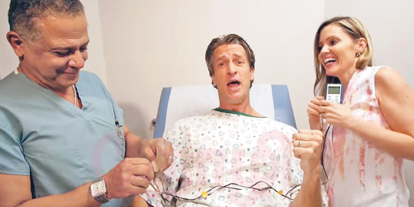 ஒரு பெண் அனுபவிக்கும் பிரசவ வலியை முழுவதுமாக அனுபவத்தில் அறிந்து கொள்ள முடிவெடுத்த பென், டாக்டர் சாமெடோமாவிடம் சென்றார். நிஜத்தில் ஒரு பெண்ணுக்கு பிரசவ அறையில் என்னென்ன செய்யப்படுமோ, அது போன்ற ஏற்பாடுகள் பென்னுக்கும் செய்யப்பட்டன. அவரை படுக்க வைத்து, எலெக்ட்ரோலெட்களை அடிவயிற்றுத் தசைகளில் பொருத்தினார் மருத்துவர். எலக்ட்ரானிக் ஸ்டிமுலேட்டரை இணைத்து அதன் மூலம் மின் அதிர்வுகளை தசைகளில் செலுத்தி வலி தூண்டப்பட்டது.