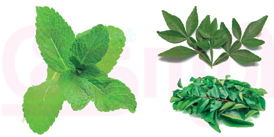 கறிவேப்பிலை: நல்ல டானிக், பேதி, சீதபேதி, காய்ச்சல், எரிச்சல், ஈரல் கோளாறுகள் மறையும். பித்தத்தை தணித்து உடல் சூட்டை ஆற்றும். அதோடு கறிவேப்பிலைக் கீரை மனதுக்கு உற்சாகத்தையும் கொடுக்க வல்லது. குமட்டல், சீதபேதியால் உண்டான வயிற்று உளைச்சல், நாட்பட்ட காய்ச்சல் ஆகியவற்றை கறிவேப்பிலை குணப்படுத்தும். பித்த மிகுதியால் உண்டாகும் பைத்தியத்தைக் குணப்படுத்த கறிவேப்பிலை உதவுகின்றது.