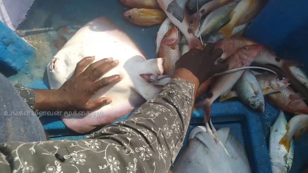 திருக்கை மீன் குட்டி போடும் காட்சி!! (வீடியோ)