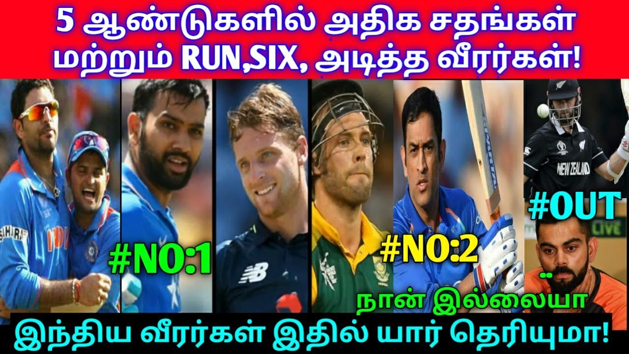 • 5 ஆண்டுகளில் அதிக சதங்கள் மற்றும் RUN,SIX, அடித்த வீரர்கள்! (வீடியோ)