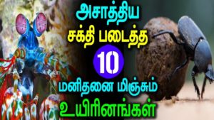 • அசாத்திய சக்தி படைத்த மனிதனை மிஞ்சும் 10 உயிரினங்கள்!! (வீடியோ)