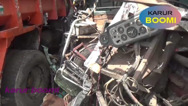 கரூர் அருகே கோரவிபத்து காட்சிகள் – லாரியும், அரசுப்பேருந்தும்!! (வீடியோ)