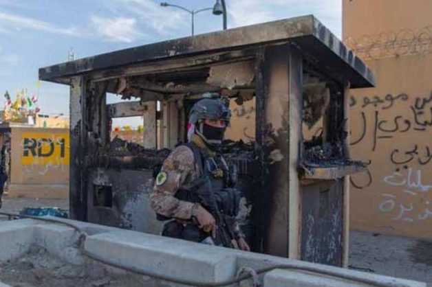 இந்த தாக்குதலை ஈரான் ஆதரவு பெற்ற துணை இராணுவ படை குழுக்கள் நடத்தியிருப்பதாக அமெரிக்கா குற்றச்சாட்டு தெரிவித்து உள்ளது. சமீப காலங்களில் பசுமை மண்டல பகுதியில் இதுபோன்ற தாக்குதல்களை இந்த குழுவினர் நடத்தியுள்ளனர் என்றும் தெரிவித்துள்ளது.