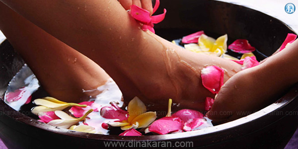 * உப்பு, ஷாம்பூ, எலுமிச்சம் பழச்சாறு கலந்த வெந்நீரில் கால்களை ஊற வைத்துக் கழுவலாம்.