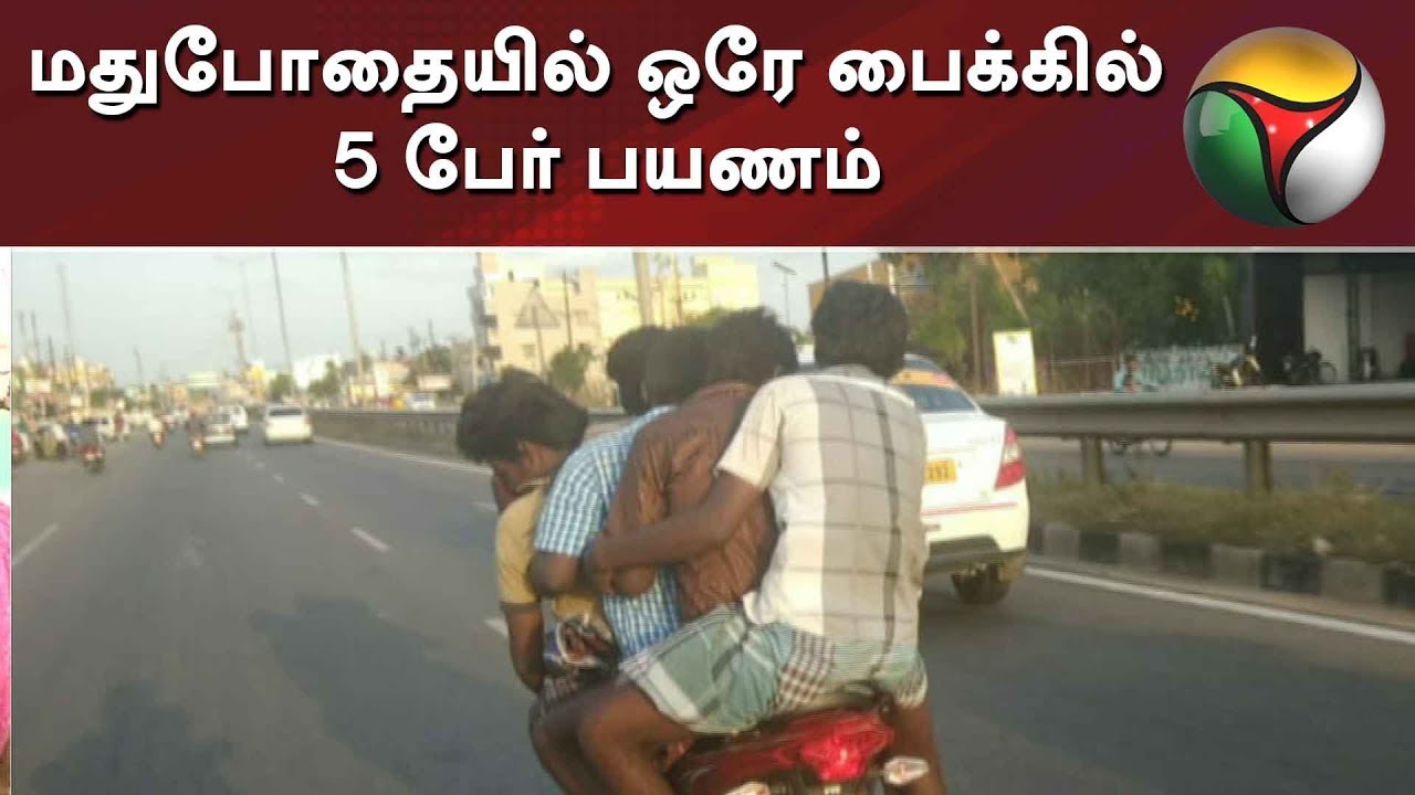• மதுபோதையில் ஒரே பைக்கில் 5 பேர் பயணம்!! (வீடியோ)