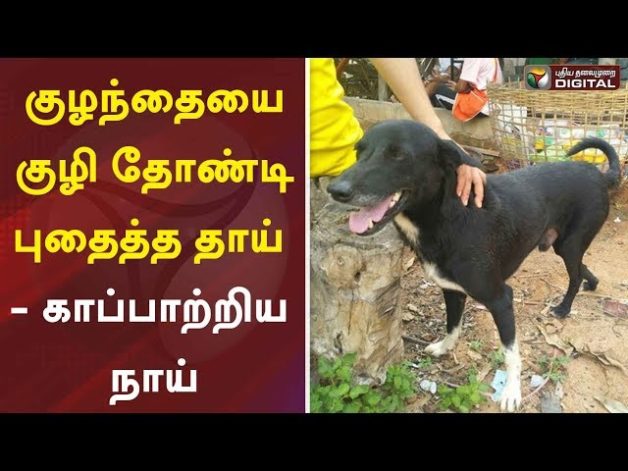 குழந்தையை குழி தோண்டி புதைத்த தாய் – காப்பாற்றிய நாய்!! (வீடியோ)