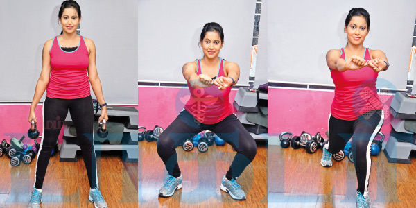 4 . இரு கைவிரல்களை கோர்த்த படி குத்த வைத்து உட்கார்வது போல சில நிமிடங்கள் நிற்க வேண்டும். நிலையை மாற்றி மறுபடியும் செய்ய வேண்டும். முட்டி, தொடை, பின் இடுப்பு தசைகள் வலுவடையும். முன் தொடையை அழகாகக் காட்டும். கவர்ச்சியான கால்களை பெறலாம்.
