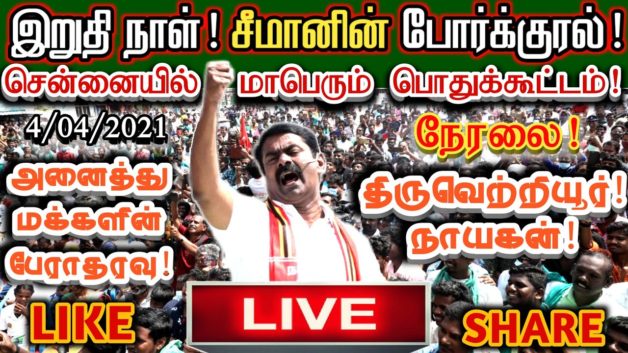 இறுதிநாள் சீமானின் மாபெரும் திருவெற்றியூர் பொதுக்கூட்டம்!! (வீடியோ)