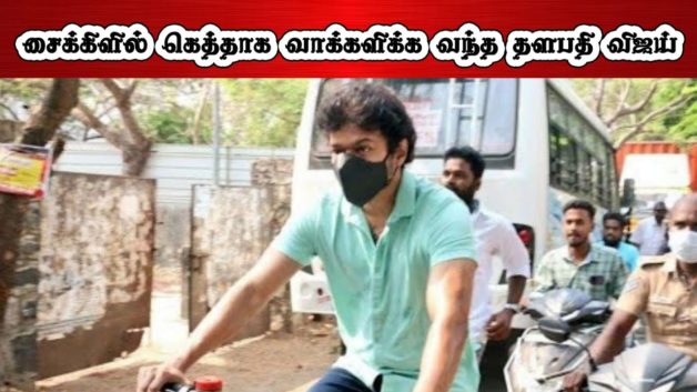 சைக்கிளில் கெத்தாக வாக்களிக்க வந்த தளபதி விஜய்!! (வீடியோ)