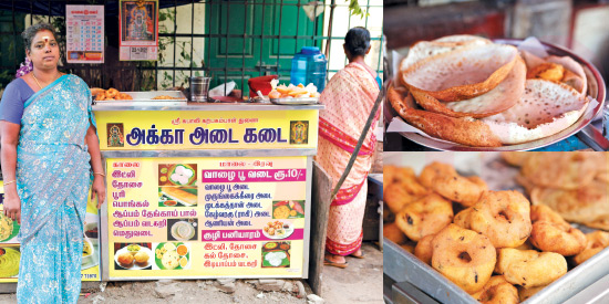 ‘‘நான் கடை ஆரம்பிச்ச போது மாலையும் இட்லி, தோசை தான் போட்டு வந்தேன். வெரைட்டி கொடுக்கலாம்ன்னு தான் அடை போட ஆரம்பிச்சேன். தினமும் காலை நாலு மணிக்கு நானும் என் மகனும் பாரீசுக்கு போய் எல்லா வகை கீரை மற்றும் வாழைப்பூவை வாங்கி வந்திடுவோம். அதன் பிறகு வீட்டுக்கு வந்து காலை டிபனுக்காக எல்லாம் தயார் செய்திடுவேன்.
