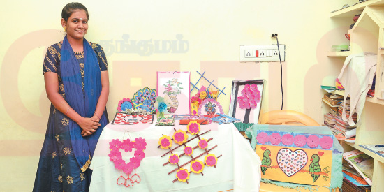 ‘‘நான் 3ம் வகுப்பு படிக்கும் போதே சிறு சிறு பேப்பர்களை வெட்டி அதில் அழகான பூக்கள் உருவாக்க பழகினேன். இதுதான் இந்த நேரத்தில் என்னுடைய மிகப் பெரிய பொழுதுபோக்காக மாறியுள்ளது. பைண்டிங் கலர் தாளில் தோகை விரித்தாடும் வண்ண மயில், கோவை பழத்தை கொத்தி தின்னும் கிளி, அன்பை பரிமாறும் கிளிகள் மரக்கிளையில் அமர்ந்து இருப்பது என சின்னச் சின்ன நுணுக்கங்களை என்னுடைய வேலைப்பாட்டில் இணைத்து இருக்கிறேன்.