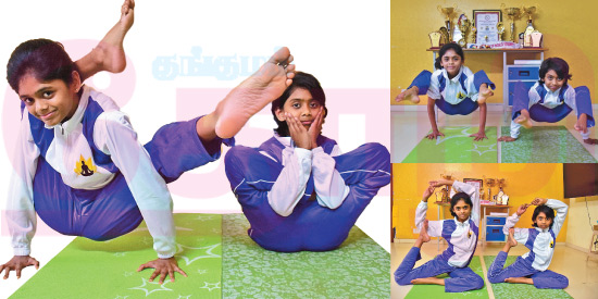 கோவை, சுந்தராபுரத்தில் அடுக்குமாடி குடியிருப்பில் வசிக்கும் அசோக், மஞ்சுளா தம்பதியின் மகள்களான அக்சத்தா, அத்வைத்தா யோகா கலையில் உலக சாதனை படைத்துள்ளனர். ‘‘ஒன்றாம் வகுப்பிலிருந்தே யோகா கற்றுக் கொண்டிருக்கிறேன். இப்போது 70க்கும் மேற்பட்ட ஆசனங்கள் தெரியும்” என்று கூறும் அக்சத்தா, சர்வதேச அளவிலான யோகா போட்டிகளில் கலந்து கொண்டு பல பரிசுகளும், விருதுகளும் பெற்றிருக்கிறார்.