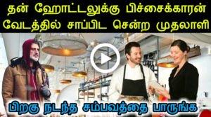 • தன் சொந்த ஹோட்டலுக்கு பிச்சைக்காரன் வேடத்தில் சென்ற முதலாளி பிறகு நடந்ததை பாருங்க!! (வீடியோ)