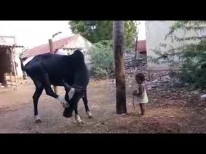 • சிறுவனின் பாசத்திற்கு விளையாட்டு காட்டும் காளை!! (வீடியோ)