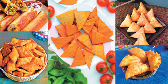 கோதுமை மாவுடன் உப்பு, வெண்ணெய் சேர்த்து பிசைந்து வைத்துக்கொள்ளவும். வாணலியில் 2 டீஸ்பூன் எண்ணெய் விட்டு நறுக்கிய வெங்காயம், நசுக்கிய இஞ்சி, பூண்டு, பச்சை மிளகாய் சேர்த்து வதக்கவும். பின்பு அதில் நறுக்கிய காய்கறிகள், வேக வைத்த பட்டாணி சேர்த்து நன்கு வதக்கி ஆற வைத்துக்கொள்ளவும். பின்பு கோதுமை மாவில் சிறுசிறு சதுர வடிவ பூரிகளாய் இட்டு, நடுவில் மசாலா கலவை வைத்து, மடித்து மூடி, ஓரங்களை தண்ணீர் தொட்டு இறுக்கமாக மூடி, வாணலியில் எண்ணெய் காய்ந்ததும் பொன்னிறமாய் பொரித்து எடுக்கவும்.