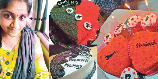 எனவே குழந்தைகளுக்கு கொடுக்கும் போது கொஞ்சம் தவிர்க்கலாமே’ என்று நானும் குழந்தைகள் கேக் சாப்பிடும் போது நாம் பார்த்திருப்போம். நிறங்கள் அடங்கிய கேக் சாப்பிடும் போது அவர்கள் கை, வாய் எல்லாம் அந்த நிறம் ஒட்டி இருக்கும். அதனாலேயே பெரும்பாலான என்னுடைய கேக்குகளில் நான் செயற்கை நிறங்களை சேர்ப்பதில்லை. பொதுவாக இன்று எல்லா மகிழ்வான நிகழ்வுகளின் துவக்கத்திலும் கேக் வெட்டி கொண்டாடி ஆரம்பிப்பது வழக்கமாக மாறியுள்ளது. அவர்களது அந்த இனிமையான நேரத்தில் என் கேக்கினை, எல்லோரும் மகிழ்வாக எடுத்து சாப்பிடும் போது மனசுக்கு நிறைவாக உள்ளது’’ என்கிறார் காயத்ரி.