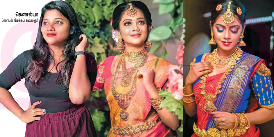 நான் அண்ணா ஆதர்ஷ் கல்லூரியில் எம்.காம் முடித்த மாணவி. கல்லூரி இரண்டாம் ஆண்டிலே கல்லூரி நிகழ்ச்சிகள், ஃபேஷன் ஷோ என தோழிகளுக்கு மேக்கப் போடத் தொடங்கி, அப்படியே மேக்கப் மீது ஆர்வம் தொற்றிக்கொண்டது. நீ மேக்கப் ஆர்டிஸ்டா மாறிடு என ஃப்ரெண்ட்ஸ் உசுப்பேற்ற, படிப்பை முடித்ததும் மேக்கப் ஆர்டிஸ்ட் ஒருவரின் அசிஸ்டென்டாகி பிராக்டிக்கலாக தொழிலைக் கற்றுக் கொண்டேன். பிறகு ஆன்லைன் வகுப்புகள் மூலமாக ஃபாரின் ஆர்டிஸ்களிடமும் ப்ரைடல் மேக்கப் குறித்து நிறைய கற்றுக் கொண்டு, அப்படியே கொஞ்சம் கொஞ்சமாக என்னை டெவலப் செய்து கொண்டேன்.