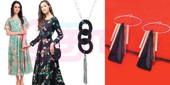 கருப்பில் பளிச் வெள்ளைப்பூக்கள். சில்வர் அல்லது கருப்பு நிற ஆக்ஸசரிஸ்களுடன் மேட்ச் செய்யலாம். மேலும் எனக்கு கால்கள் தெரியக்கூடாது என்போருக்கு இந்த மேக்ஸி பொருத்தமாக இருக்கும். வேண்டுமானால் லெக்கிங்ஸ்களையும் பயன்படுத்திக் கொள்ளலாம். லெக்கிங்ஸ் அவ்வளவு அவசியம் இல்லை. ஆனால் மனத் திருப்திக்காக பயன்படுத்திக் கொள்ளலாம். சினிமா, வார இறுதி நண்பர்கள் சந்திப்பு, அலுவலக ட்ரிப் என இந்த உடை பொருத்தமாக இருக்கும்.