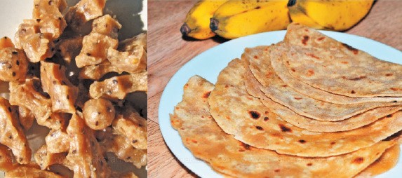 வாழைப்பழத்தை துண்டுகளாக்கி பால், சர்க்கரை சேர்த்து அரைக்கவும். பாத்திரத்தில் கோதுமை மாவில் வாழைப்பழக் கூழ் சேர்த்து பிசையவும். தேவைப்பட்டால் தண்ணீர் சேர்த்துக் கொள்ளலாம். சப்பாத்தி மாவு போல பிசைந்து, திரட்டி, தவாவில் இருபுறமும் வேகவிட்டு எடுக்கவும். பொட்டாசியம் சத்து நிறைந்தது.