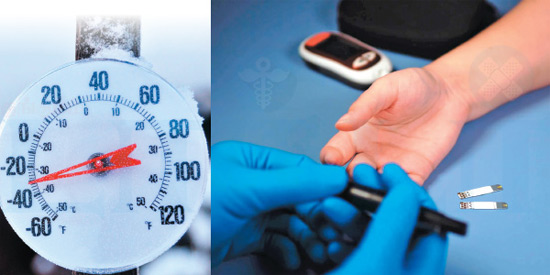உலக வெப்பநிலை அளவுகளையும் ஒவ்வொரு பகுதிகளிலும் காணப்படும் நீரிழிவு பாதிப்புகளையும் நெதர்லாந்து ஆய்வாளர்கள் தொடர்ந்து கண்காணித்து வருகின்றனர். இந்த ஆய்வின்படி, ஒரு பகுதியில்1.8 டிகிரி ஃபாரன்ஹீட் (அதாவது 1 டிகிரி செல்சியஸ்) வெப்பநிலை உயரும்போது நீரிழிவாளர்களின் எண்ணிக்கையும் ஆயிரத்துக்கு 0.3 பேர் என்கிற அளவில் அதிகரித்திருப்பது தெரியவந்துள்ளது. அமெரிக்காவில் மட்டுமே ஆண்டுக்கு ஒரு லட்சம் நீரிழிவாளர்கள் உருவாவதையும் வெப்பநிலை விவகாரத்தையும் முடித்துவிட்டு ஆய்வைத் தொடர்கின்றனர் விஞ்ஞானிகள்.