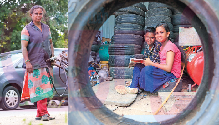 ‘‘அவர் இறந்த 16ம் நாள் பிள்ளைகளை ஸ்கூலில் விடப்போனேன். அப்பா இருந்தால் இந்நேரம் எங்களை வண்டியில கொண்டுவந்து விடும்னு மகள் சொல்ல, அன்னைக்கு அவரோட மூன்று சக்கர வண்டில சைடில் இருந்த இரண்டு டயரையும் கழட்டிப் போட்டுட்டு தைரியமாக வண்டிய ஓட்ட ஆரம்பிச்சேன். வெளியில் வராமல் இருந்த 30 நாளும், யு டியூப் பார்த்து பஞ்சர் ஒட்டும் வேலைகளை ஓரளவு தெரிஞ்சுக்கிட்டேன்.