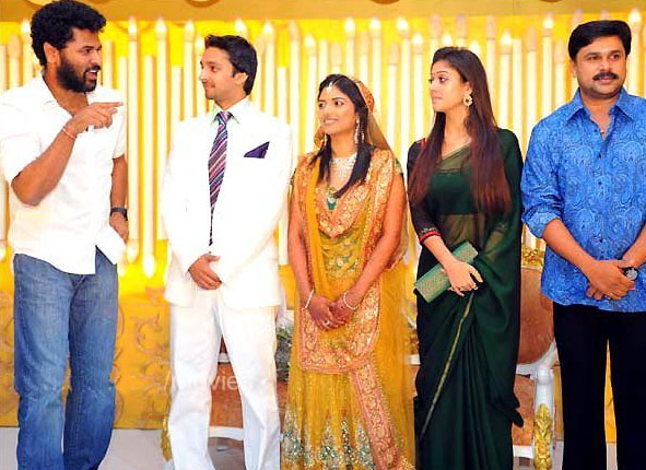 பிரபல மலையாள – தமிழ்ப் பட இயக்குநர் சித்திக் மகள் திருமணத்துக்கு தனது நயன்தாராவுடன் பகிரங்கமாக வந்து ‘சிறப்பித்தார்’ பிரபு தேவா. சித்திக் மகள் சுமையா திருமண வரவேற்பு கொச்சியில் நடந்தது. மலையாள நடிகர், நடிகைகள், இயக்குனர்கள் பங்கேற்று வாழ்த்தினர். இந்த திருமண வரவேற்பு நிகழ்ச்சியில் பிரபுதேவாவும், நயன்தாராவும் கலந்து கொண்டனர். காரில் இருந்து இறங்கிய பிரபு தேவா, ஒரு கையால் நயன்தாராவை அணைத்தபடி மண்டபத்துக்கு வந்தார். மேடைக்கு சென்று மணமக்களை ஜோடியாகவே வாழ்த்தினார்கள். பின்னர் முன் இருக்கையில் அருகருகே உட்கார்ந்து சிரித்துப் பேசிக் கொண்டிருந்தனர். இதனால் புதுமண ஜோடியை விட்டுவிட்டு இந்த காதல் ஜோடியைப் பார்க்க திருமணத்துக்கு வந்தவர்கள் முண்டியடித்தனர்… (மேலும் புதிய படங்கள்)