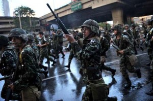 எனவே போராட்டம் தொடர்ந்து நீடிக்கிறது. போராட்டக்காரர்கள் பாங்கொக் நகரில் தொடர்ந்து குவிகின்றனர். ஆங்காங்கே கூடாரங்களை அமைத்து வருகின்றனர். இதனால் அங்கு இராணுவம் குவிக்கப்பட்டுள்ளது. நவீன தானியங்கி துப்பாக்கிகள் மற்றும் கண்ணீர் புகை குண்டுகளையும் குவித்து வைத்துள்ளனர். இதற்கிடையே இன்று காலை போராட்டக்காரர்களுக்கும், இராணுவத்துக்கும் இடையே மோதல் ஏற்பட்டது. இதையடுத்து இராணுவத்தினர் துப்பாக்கியால் சுட்டனர். இதில், 4 பேர் காயம் அடைந்தனர். அவர்களில் மூவரே வெளிநாட்டு ஊடகவியலாலர்கள் எனத் தெரிவிக்கப்படுகிறது.
