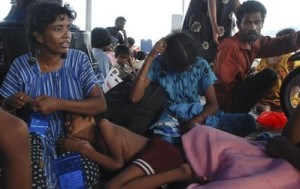 Asylum seekers from Sri Lanka who are rescued by Indonesian authorities after their ship broke down wait for medical check upon arrival at Merak port in Banten province, Indonesia, Wednesday, Oct. 20, 2010. Indonesia is a major launching post for asylum seekers seeking refuge in Australia. (AP Photo)