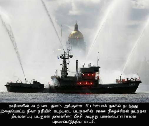 B-DLI 280704 – JULY 28, 2008 – ST. PETERSBURG : A fire boat salutes in front of St. Isaac’s Cathedral during Navy Day celebrations on the Neva River in downtown St.Petersburg, Russia, Sunday, July 27, 2008. The celebration of Navy Day in Russia is traditionally marked on the last Sunday of July. AP/PTI
