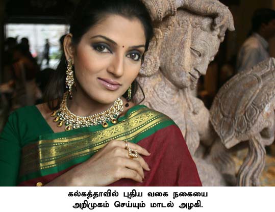 An Indian model wears traditional gold jewellery as she poses for a photo session during a promotional campaign in the eastern Indian city of Kolkata July 31, 2008. REUTERS/Jayanta Shaw (INDIA)