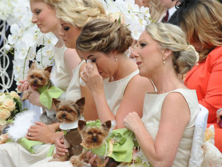 • திருமண வைபவத்தில் மணமக்கள் தோழிகள், தோழர்களாக நாய்கள்…!!