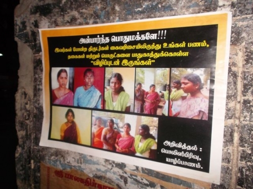 • திருடிகள் எனக் கூறி தமிழ்ப் பெண்களின் புகைப்படங்களுடன் சுவரொட்டிகள்…!!