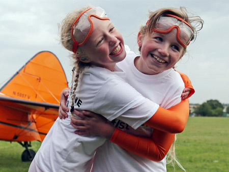• விமானத்தின் இறக்கைமீது பயணித்து புதிய சாதனை படைத்த சிறுமிகள்..!!