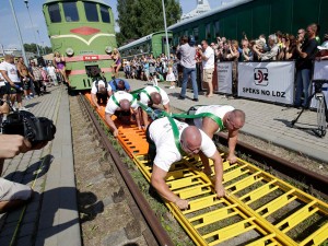 ஐரோப்பாவின் மிகப் பல சாலி மனிதர்கள் என்ற சாதனையை படைப்பதற்காக, லத்வியாவின் ரிகா சிட்டி நகரில் கடந்த ஞாயிறன்று இவர்கள் ரயில் என்ஜினை இழுத்தனர்.
