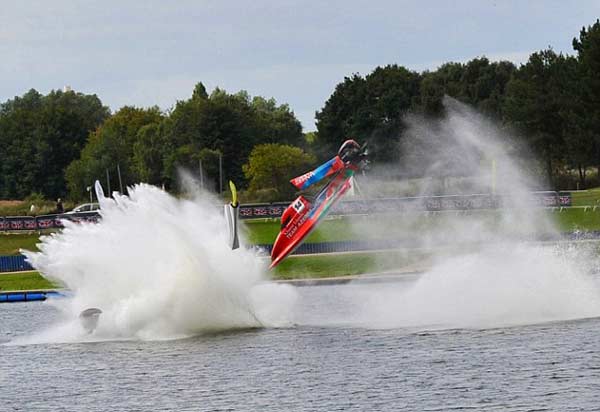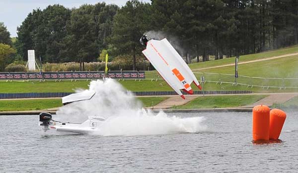 மணித்தியாலத்துக்கு 193 கிலோமீற்றர் (120 மைல்) வேகத்தில் இரு படகுகள் மோதிக்கொண்டு அந்தரத்தில் 360 பாகையில் சுழன்று வீழ்ந்த பின்னரும் அதன் சாரதிகள் காயமெதுவுமின்றி தப்பிய சம்பவம் உலக அதி விசைப் படகுகளின் சம்பியன்ஷிப் போட்டிகளில் இடம்பெற்றுள்ளது.