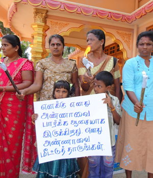 • வவுனியாவில் காணாமல் போனோரின் உறவுகள் தீப்பந்த போராட்டம்