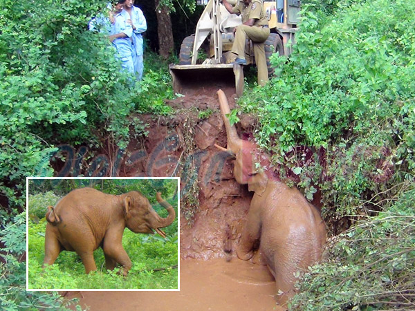 • குழிக்குள்ளிருந்து மீட்கப்பட்ட குட்டி யானை குடியிருப்பு பிரதேசத்துக்குள்..