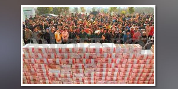 • கட்டுக்கட்டாக 13 கோடி ரூபாயை தெருவில் அடுக்கி வினியோகம்