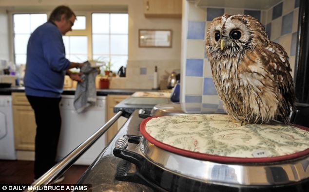 • வெளியில் பறந்து செல்ல அஞ்சி எஜமானருடன் பொழுதைக் கழிக்கும் ஆந்தை