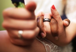 NEW YORK, NY – JUNE 27: U.S. Air Force Senior Airman Shyla Smith and Courtney Burdeshaw hold hands while waiting to get married at the Manhattan Marriage Bureau the day after the U.S. Supreme Court ruling on DOMA on June 27, 2013 in New York City. The high court struck down the Defense of Marriage Act (DOMA) and ruled that supporters of California’s ban on gay marriage, Proposition 8, could not defend it before the Supreme Court. The pair said they planned to get married today before the ruling came down. (Photo by Mario Tama/Getty Images)