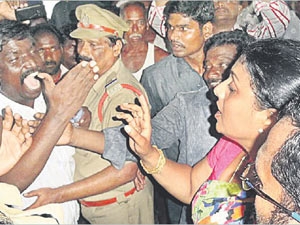 • தெலுங்குதேச தொண்டர்களுடன் மோதல்: நடிகை ரோஜாவை தாக்க முயற்சி!!