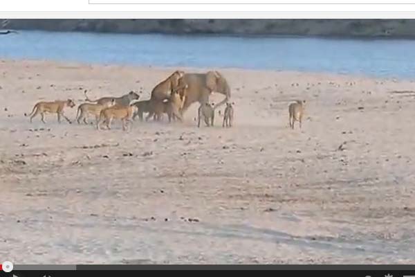 தெற்கு ஆபிரிக்காவில் உள்ள ஜாம்பியா நாட்டில் உள்ள தென் லுவாங்கா தேசிய பூங்காவில் யானைக்குட்டி ஒன்றை 14 சிங்கங்கள் இணைந்து உணவுக்காக தாக்குதல் நடத்தியது.