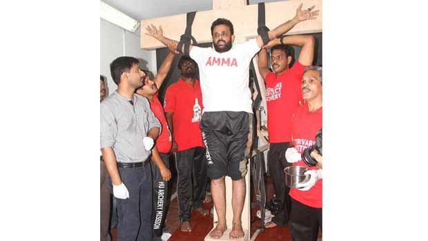 அம்மா முதல்வராகக் கோரி தன்னை சிலுவையிலறைந்த கராத்தே மாஸ்டர்!!