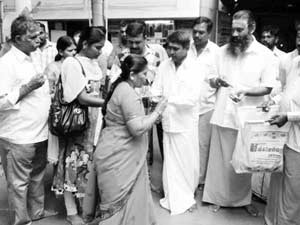 • தாலி அகற்றும் போராட்டத்துக்கு கண்டனம்: பெண்களுக்கு மஞ்சள் தாலிக்கயிறு வழங்கிய அனுமன் சேனா!!